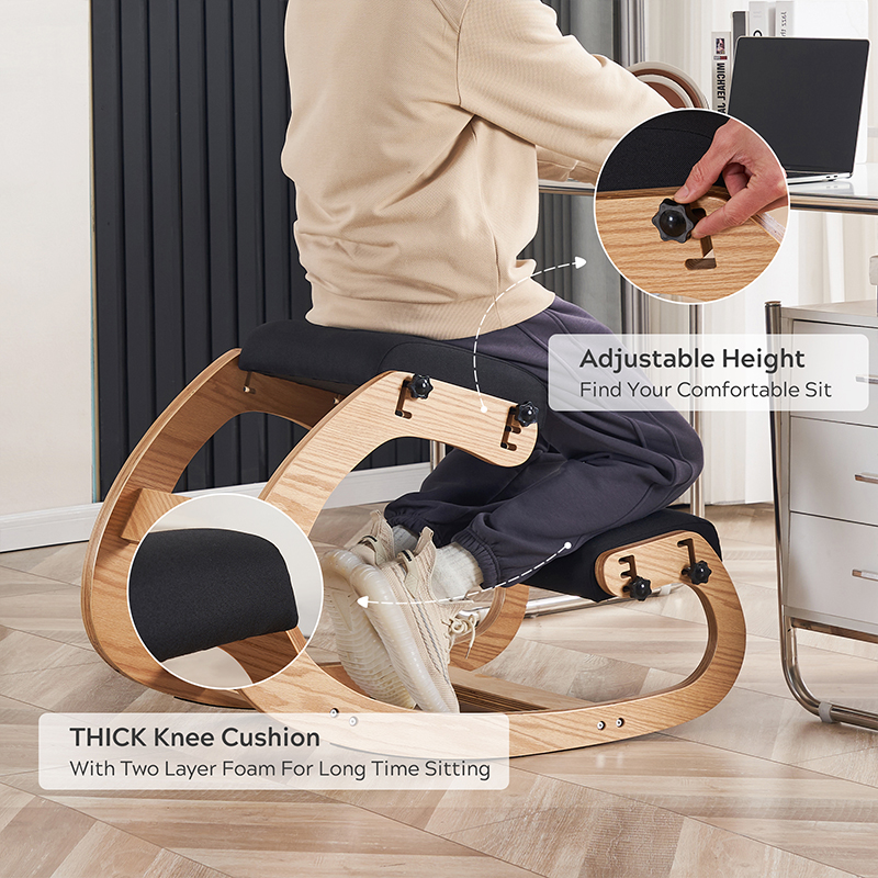 Najbardziej przyciągającą wzrok rzeczą w Klęczącym Krześle Biurowym jest jego unikalna koncepcja projektowa. W przeciwieństwie do tradycyjnych stojących lub odchylanych krzeseł biurowych, krzesło łączy funkcję klęczenia i lekkiego bujania, zachęcając użytkowników do pracy w bardziej naturalnej i zrelaksowanej pozycji. Taka konstrukcja może nie tylko skutecznie zmniejszyć ciśnienie w kręgosłupie i pobudzić krążenie krwi, ale także w pewnym stopniu złagodzić zmęczenie spowodowane długotrwałym siedzeniem. Funkcja bujania fotela symuluje efekt lekkiego wysiłku, pomagając użytkownikom zrelaksować ciało i umysł nawet nie zdając sobie z tego sprawy, poprawiając w ten sposób efektywność pracy i kreatywność.