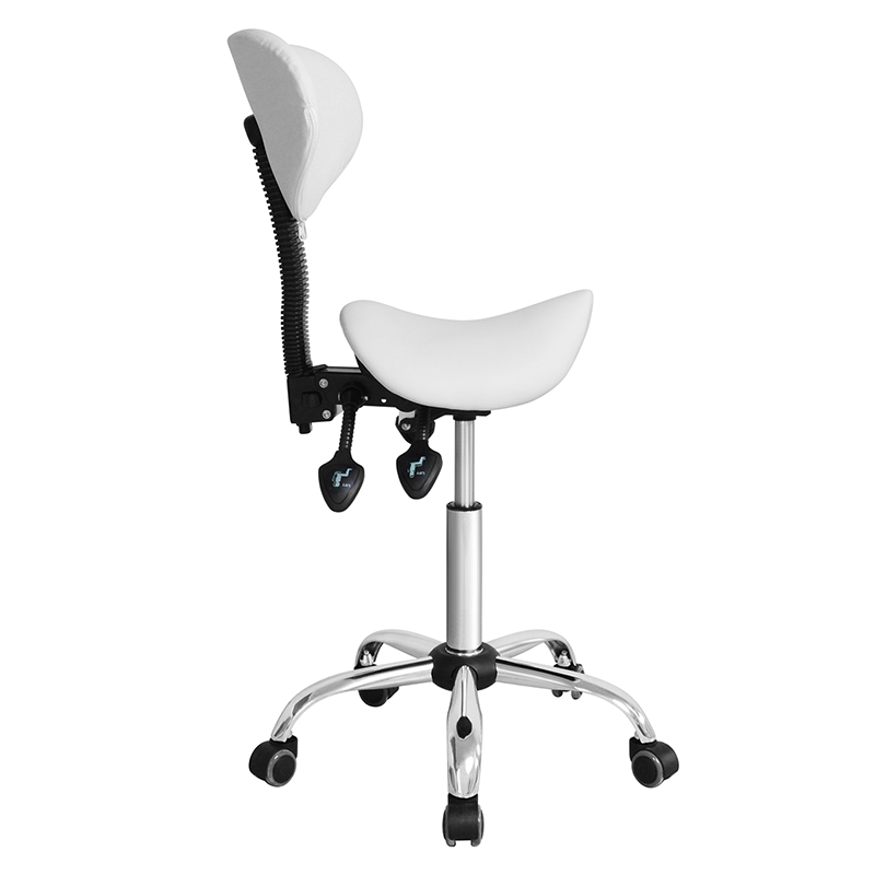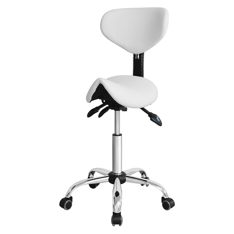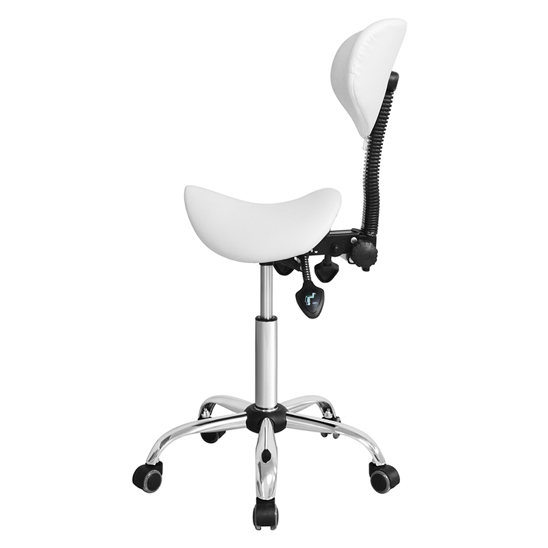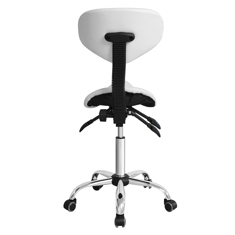 Krzesło posiada oparcie w środkowej części, które zostało ergonomicznie zaprojektowane, aby zapewnić stałe podparcie pleców, ramion i szyi. Kształt siodełka pozwala użytkownikowi siedzieć na krześle w odpowiedniej pozycji, zapobiegając nadwyrężeniu i dyskomfortowi.